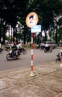 ■シクロ乗入れ禁止区域の標識 これが立ってても、お構いナシにシクロが走ってる。