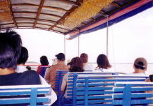 クルーズが始まるのだが、最初は川幅の広いところを大きな船で大人数で行く。メコン川は想像していた通り、