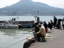 【写真上】淡水河で釣りをする人々 ナニが釣れるのかしら?