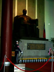 1時間おきに行われる衛兵交代式をちょうど見ることが出来た。しかし、中正紀念堂の蒋介石の像といい、ここの