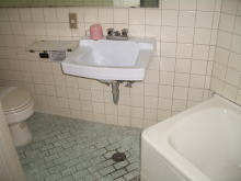 [写真下] バスルーム。設備は古いけど、清掃が行き届いている感じ。取りあえず清潔。
