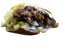 胡椒餅とは、胡椒たっぷりで味付けしたお肉とネギ等の具を、小麦粉を練った生地で包んで、窯で焼いたもの。周りはカリカリ、中はジューシーで、小腹が減った時のおやつに最適な品。