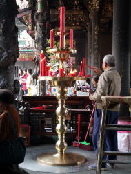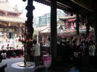 で、龍山寺って、ちょっと不思議なのが仏様も神様も両方とも祀られているところ。それだけにご利益も二重にあるとか、ないとか?!日本人ツアー客も大勢来ていて、ガイドさんの指示に従って、おみくじなどを引いていた。