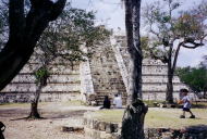いくつかの遺跡を周り、エル・カスティージョ(ピラミッド)の内部に行く。内部は日差しがない分、少しだけマシだが、それでも熱気がこもっていて、異常な蒸し暑さ。サウナに入ってみたいに汗がダラダラ。(写真上の右)