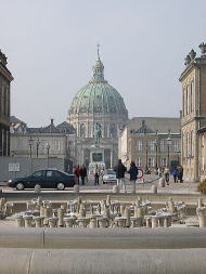 再びバスに乗り込み、アメリエンボー宮殿で下車。宮殿の屋根に国旗が翻っていたら、女王が宮殿にいるという印。ワタシが行った時は、ちょうど国旗が見えたので、女王はすぐそこに。警備が厳重でないのに、こんなにそばまで行けるなんて、この国がとても平和で、政情も安定しているから。