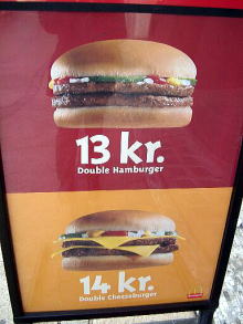 ■ダブルバーガーは約230円、ダブルチーズバーガーは、約250円でした・・・(2002年4月当時)
