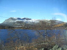 ◆車窓の景色。オスロ近辺は、紅葉の美しい景色が広がっていたけど、標高が高くなるにつれて木々が消え、雪景色に変わっていった。一時たりとも目の離せない、美しい景色が延々と続くので、眠る暇は全くない!そして12:53、ようやくミュルダール駅到着。