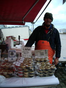 次に、日本語の小さな立て看板が出ていたお店へ。ナニナニ?「キャビア 1つ600円、1パック(6個入り)3,000円」となっていた。パックで買うと、1つ分無料になる為お得なので、仕切にお店のお兄ちゃんがパック入りを勧めてくる。でも、6個もいらないので、旅の記念としてノルウェーキャビア(実はキャビアじゃなく、ただの魚卵)を1つだけ購入することにした。