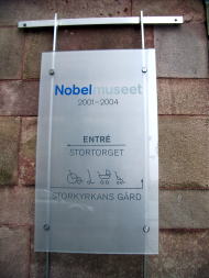 一度ガムラ・スタンの大きな路地をザッと歩き回ってみる。時間が早いこともあってか、お土産屋さんもほとんど開店前だった。歩いているうちに11時を過ぎたので、一度ノーベル博物館へ行く。(入場料:50クローネ)