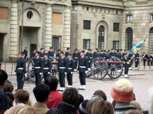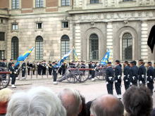 正午。ノーベル博物館は王宮から近い場所にあるので、出た時には、王宮方面から、パレードの音楽が聞こえてきた。見逃すワケにはいかない!と思い、猛ダッシュで王宮に向かう。