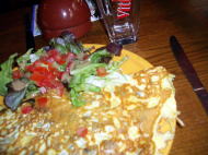 ◆クレープリーで1度食べてみたいと思っていたので、迷わず入店。クレープの他にオムレツのメニューもあり、「朝だし、卵の方が無難かな〜」とマッシュルームとチーズの オムレツ、サラダ添え6.5ユーロ(約900円)を注文。運ばれてきたのは、巨大なオムレツ。卵大好きなワタシはペロリと平らげ満足!