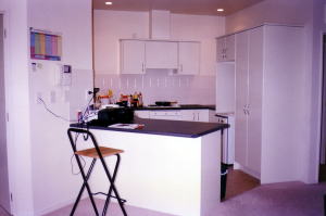 この部屋、確か週NZ$400。なので、4人で割って1人週NZ$100ずつだったかな。場所もいいし、綺麗だし、これだけ設備が整ってて週NZ$100はとても安い!