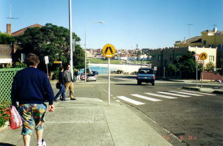 North Bondi から Bondiへ。 Bondi Beach はすぐ目の前。もっと目の前に巨大なおばちゃんがいるが・・・この程度の巨大な人はゴロゴロ歩いてます。恐るべし、シドニー・・・